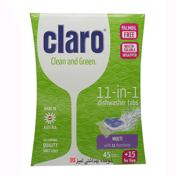 - قرص ماشین ظرفشویی کلارو ۱۱ کاره 60 عددی ساخت کشور اتریش می باشد